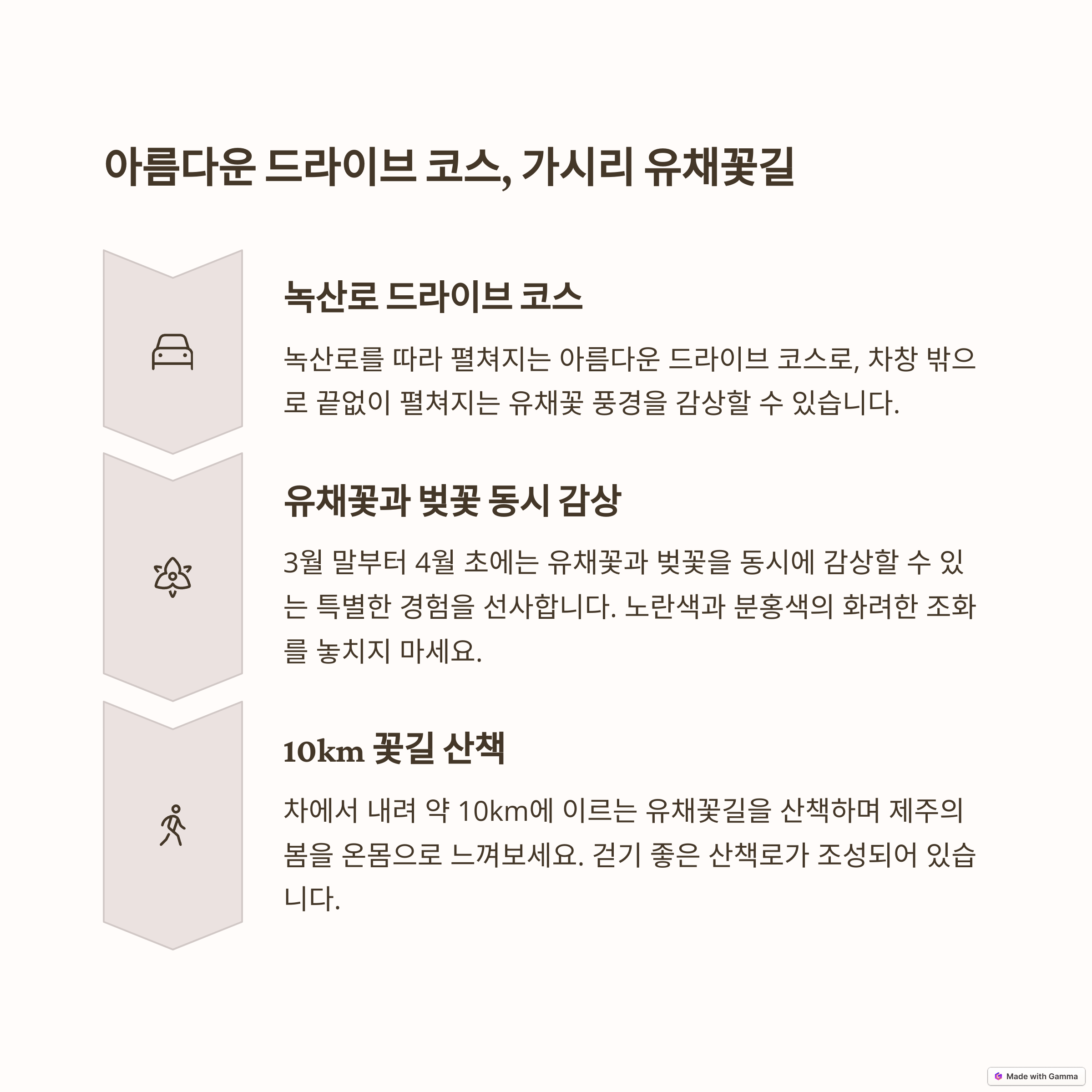 제주에서 가장 인상 깊은 드라이브 코스를 꼽으라면, 단연 가시리 유채꽃길입니다.